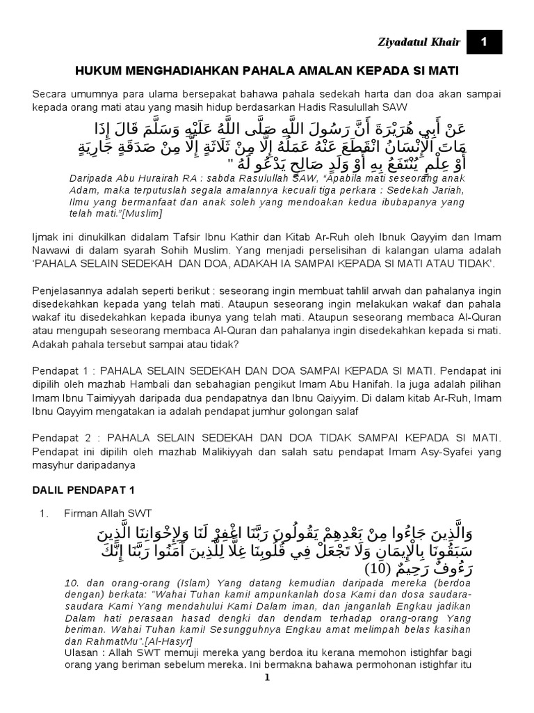 Hukum Menghadiahkan Pahala Amalan Kepada Si Mati