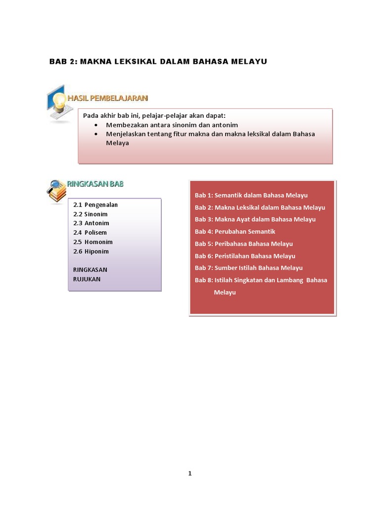 Isi Pelajaran Semantik Dan Peristilhan Bahasa Melayu Psgr Bmm3111 1