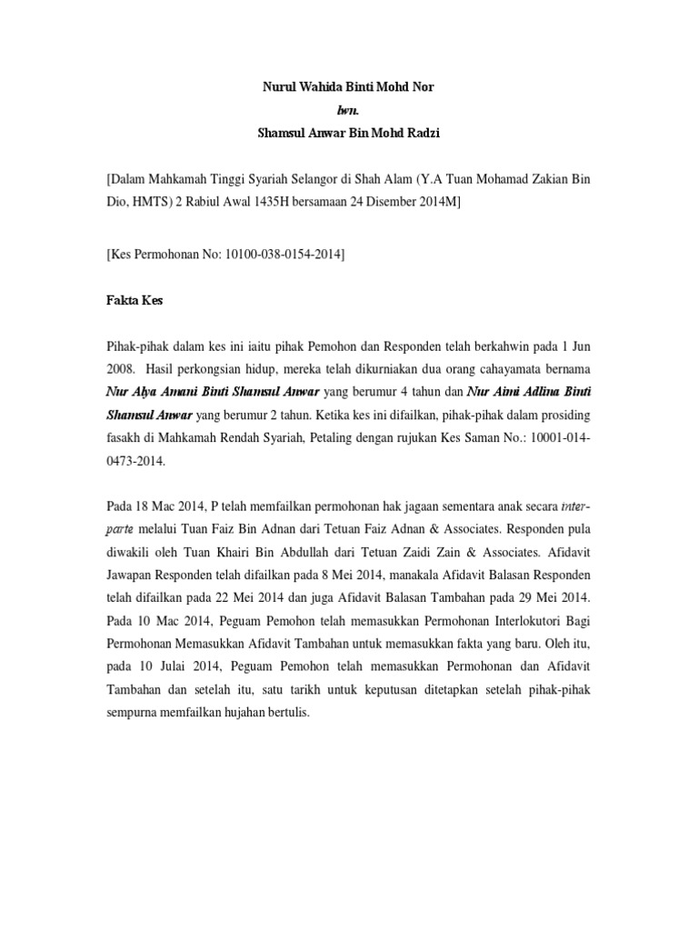 Pdf Tuntutan Hadhanah Contoh Najihah 84 Academia Edu