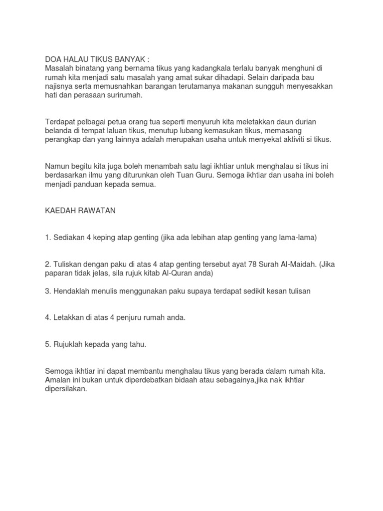 Doa Halau Tikus Dari Rumah