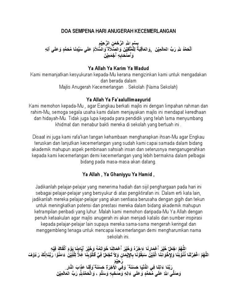Doa Sempena Hari Anugerah Kecemerlangan Documents