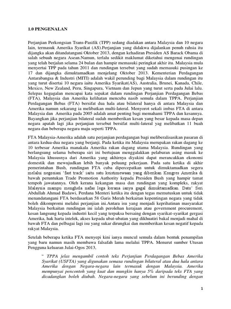 Doc Perjanjian Perkongsian Trans Pasifik Tppa Manfaat Dan Risiko Farid Aswan Ismail Academia Edu