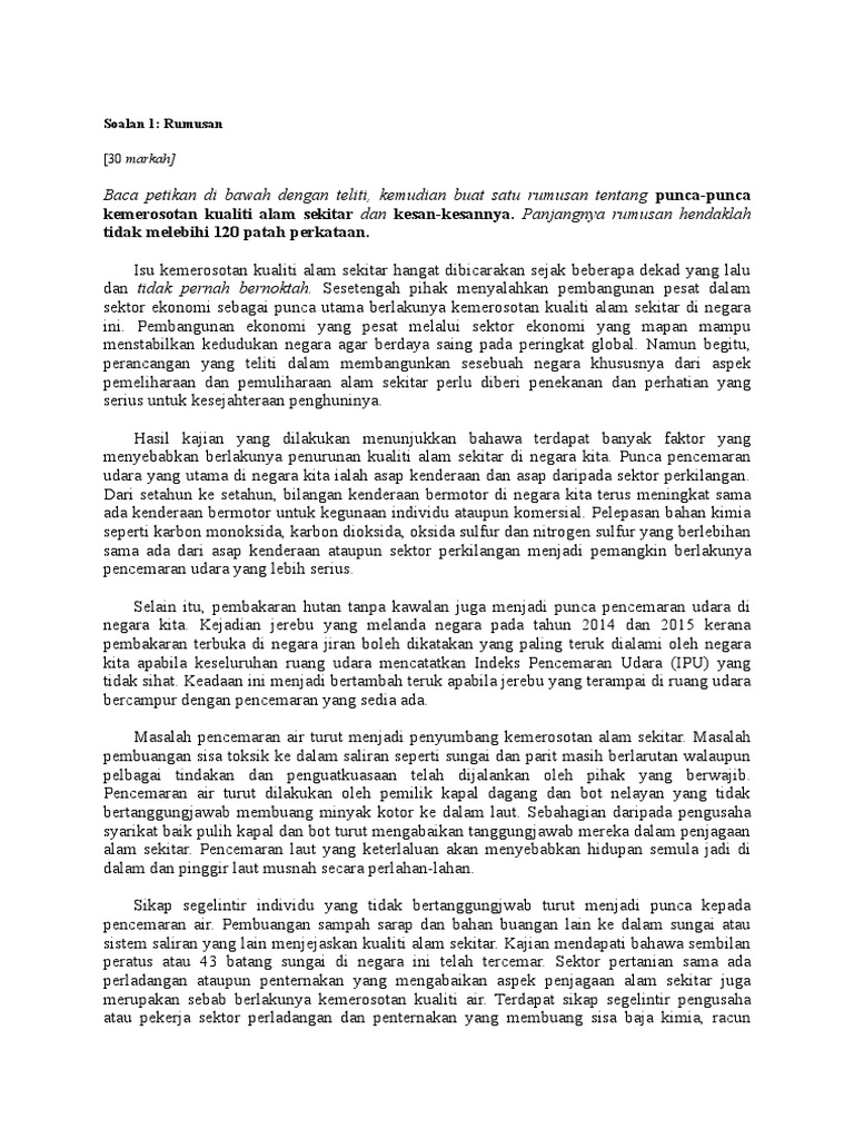 Contoh Karangan Alam Sekitar Spm Jawat Koso