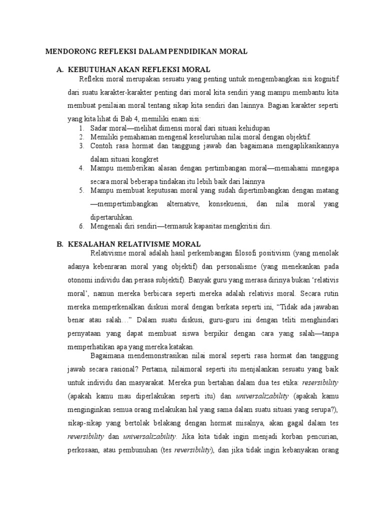 Mendorong Refleksi Dalam Pendidikan Moral Docx
