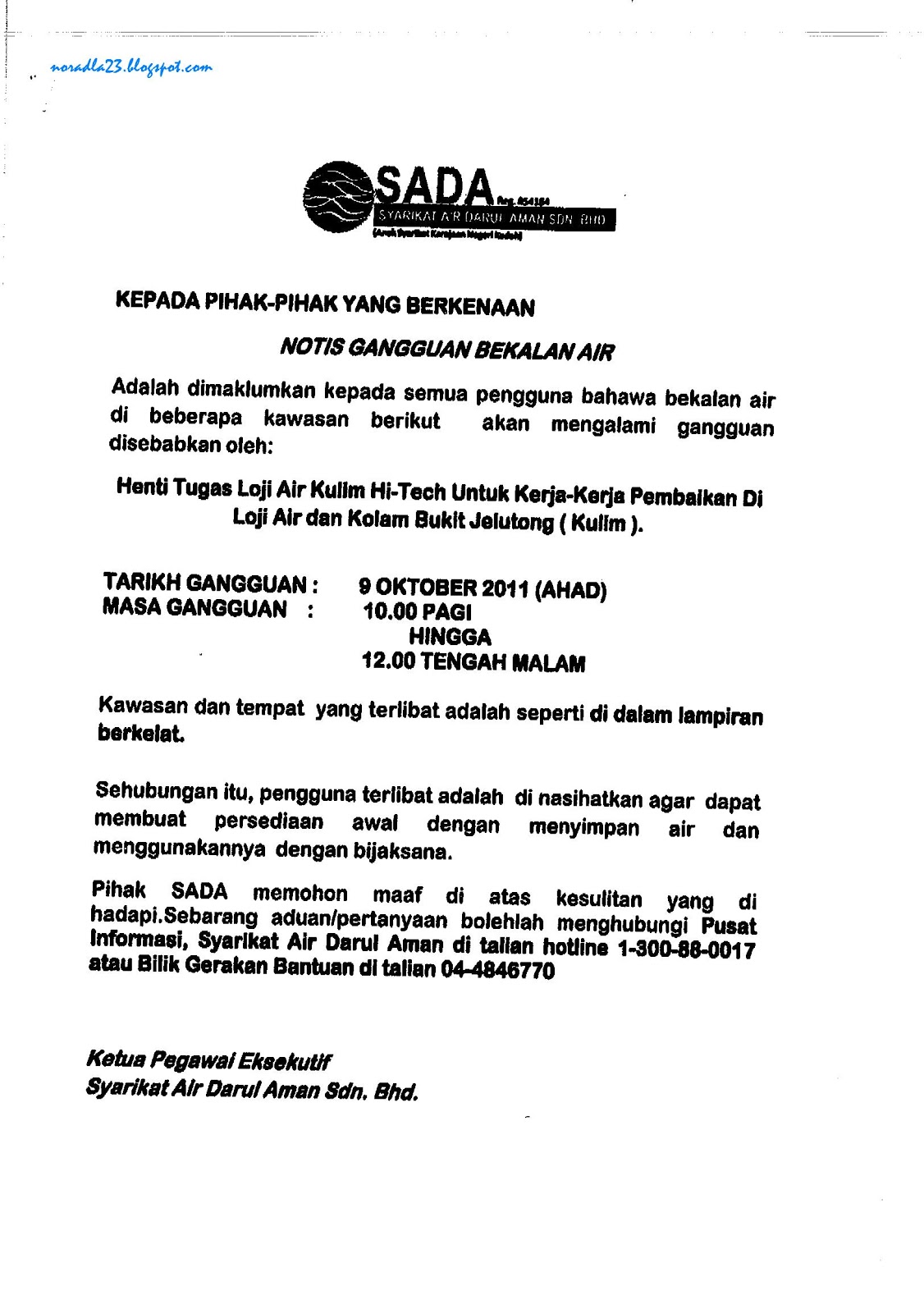 Notis Gangguan Bekalan Air Sada Di Aduan Rakyat Kedah Facebook