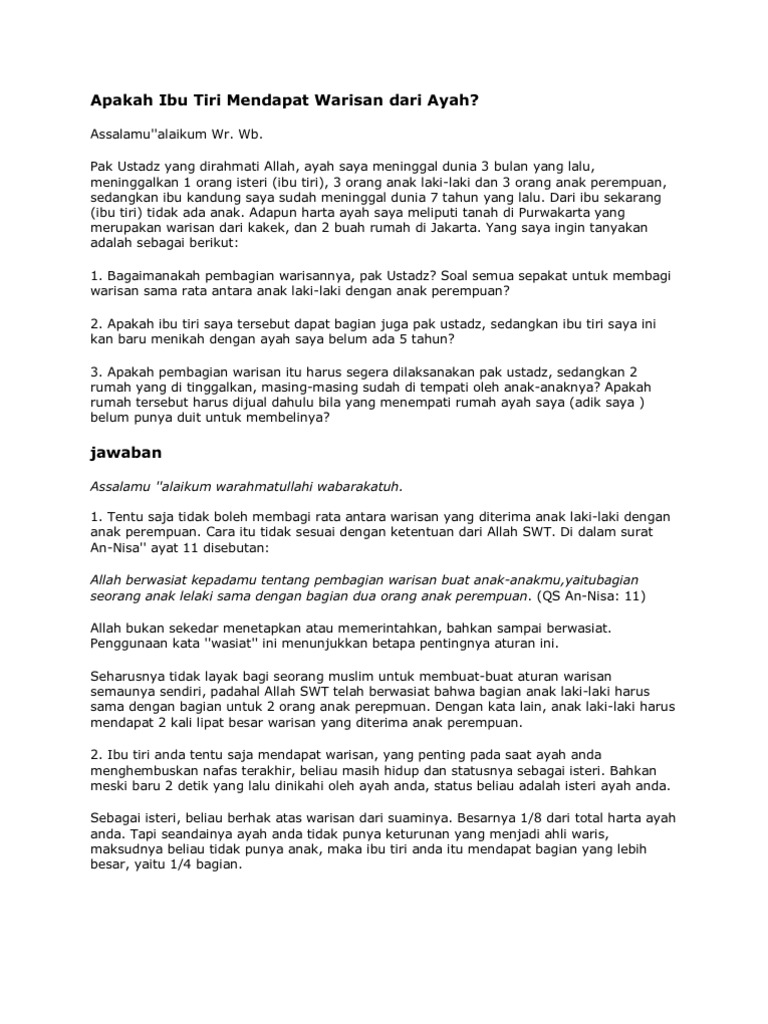 Apakah Ibu Tiri Mendapat Warisan Dari Ayah