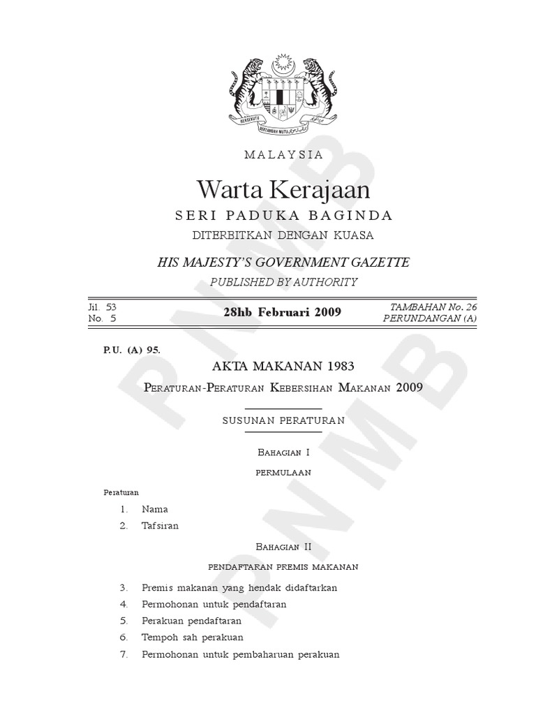 Peraturan Peraturan Kebersihan Makanan 2009