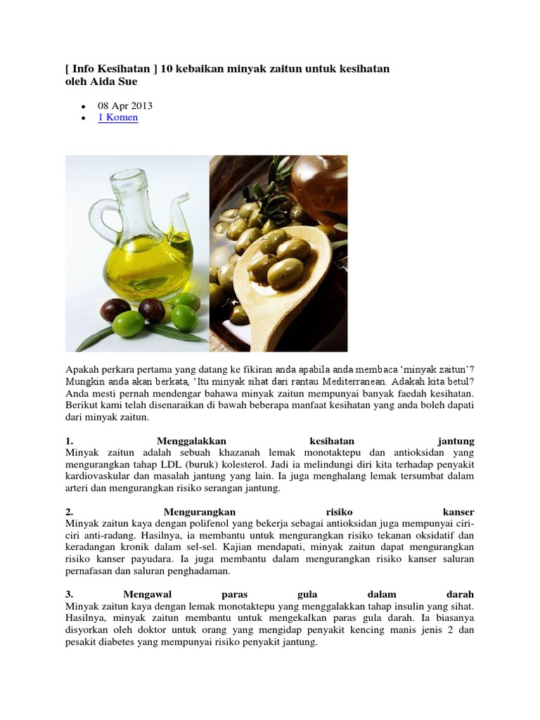 Info Kesihatan 10 Kebaikan Minyak Zaitun Untuk Kesihatan Oleh Aida Sue