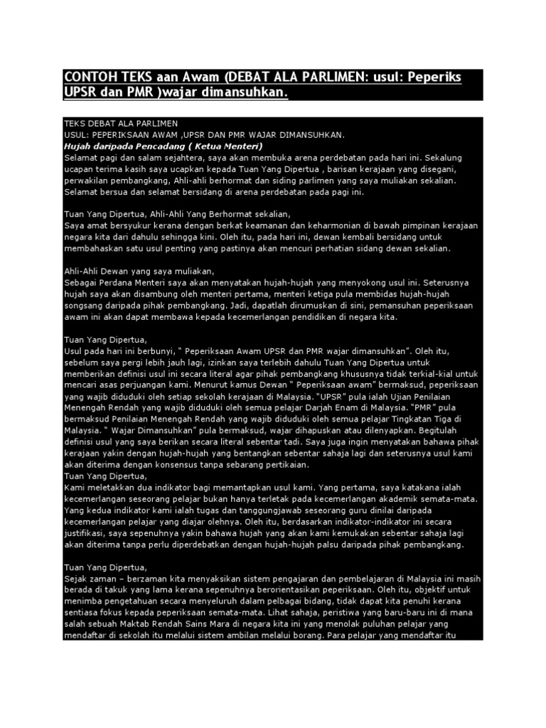 Contoh Teks Debat Ala Parlimen Test Assessment Teaching
