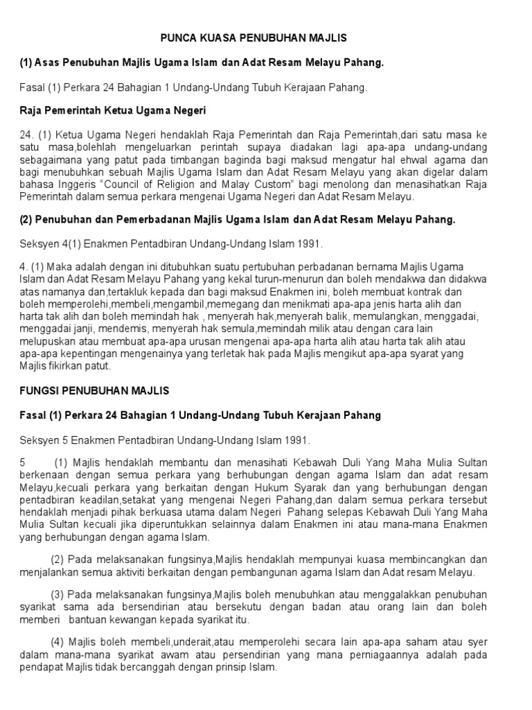 Bahagian Pertama Undang Undang Tubuh Kerajaan Pahang Pengenalan Portal Diraja Pahang